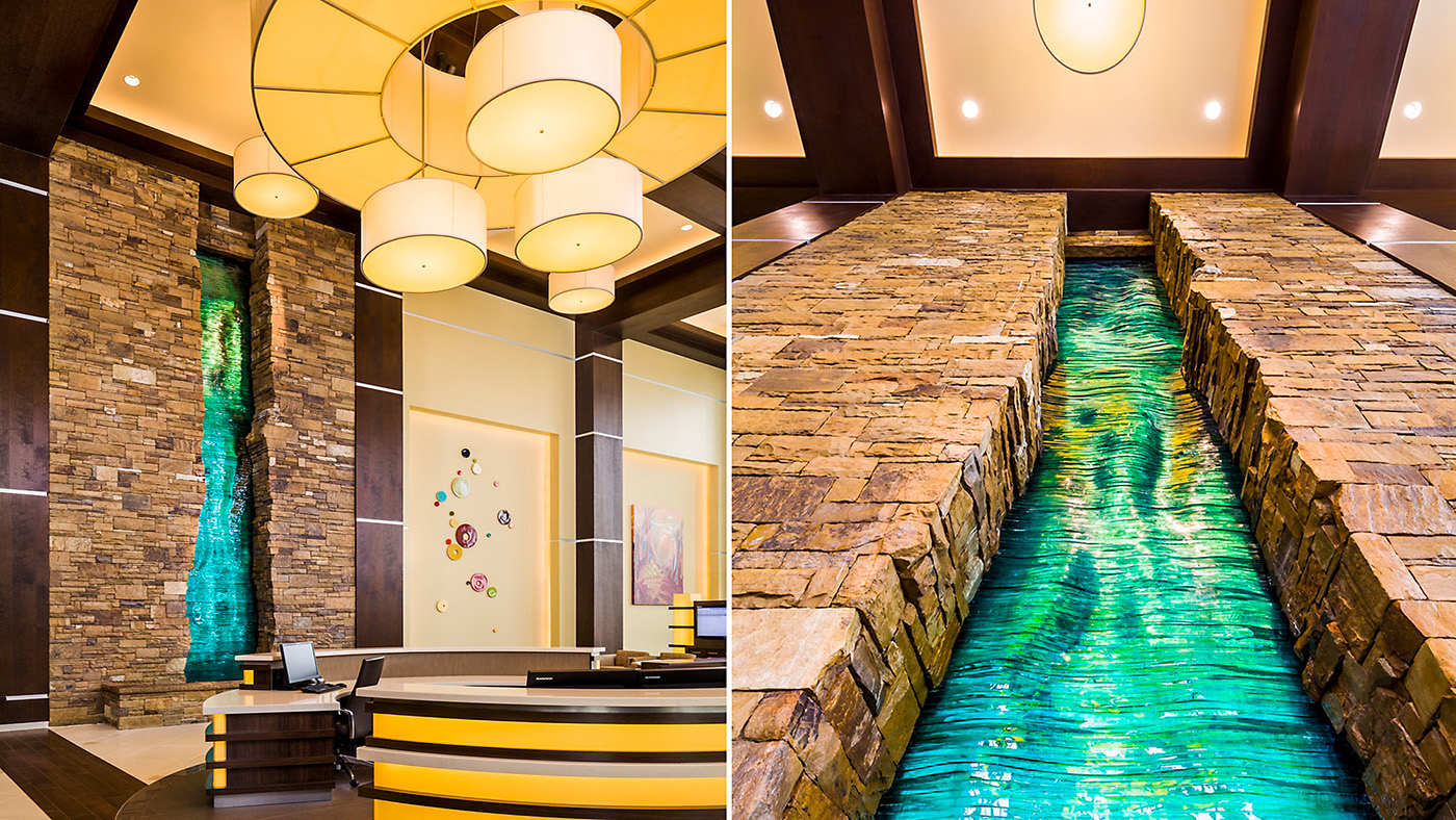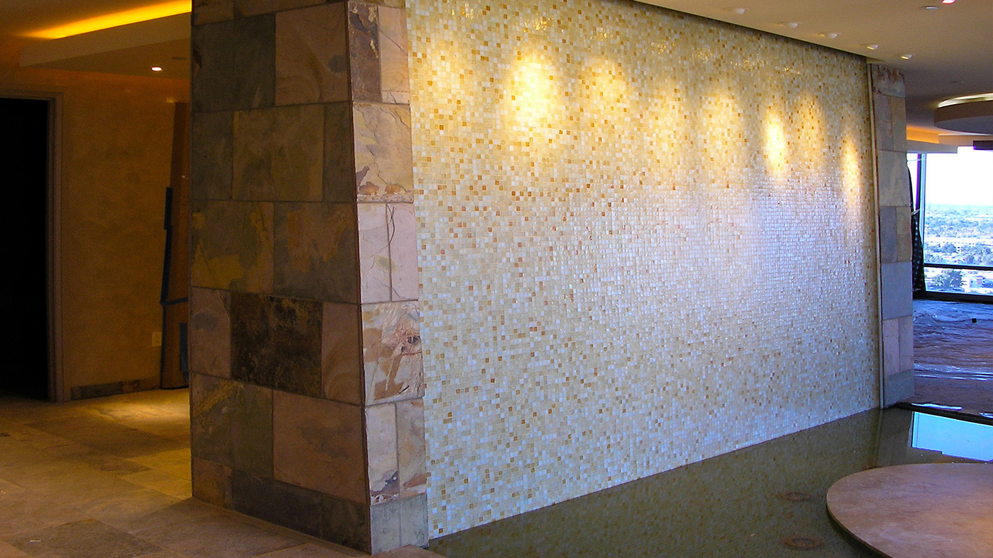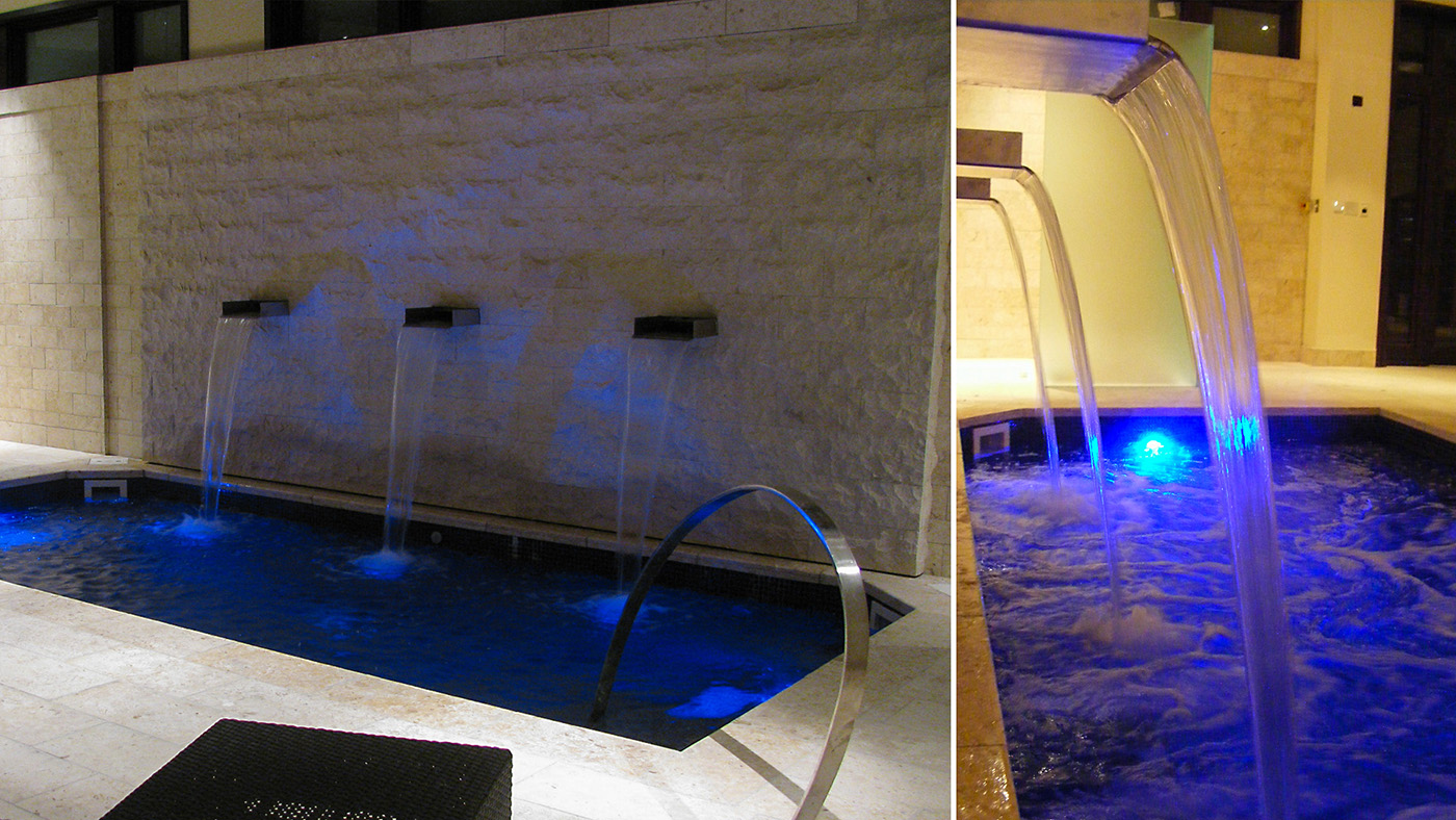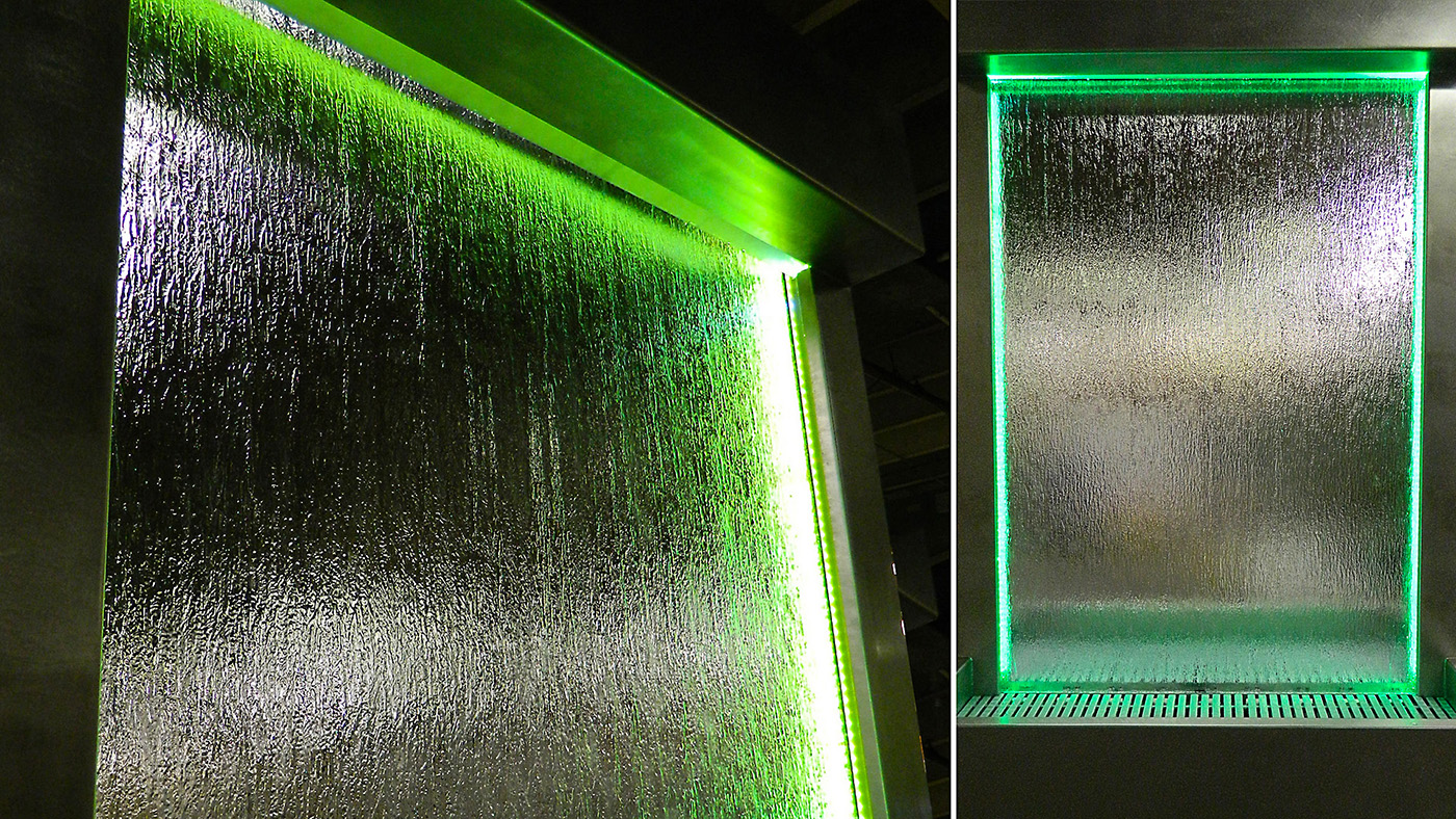 Bradford waterfalls and water walls are tranquil, elegant additions to any residential or commercial space. Enhance a lobby, courtyard, entryway, VIP suite, or luxury treatment area with a vibrant interplay of falling water, light, sound and reflective color. Choose from beautiful tile, marble, or granite, as falling water highlights the chosen surface material – creating an interplay of light reflection and movement.